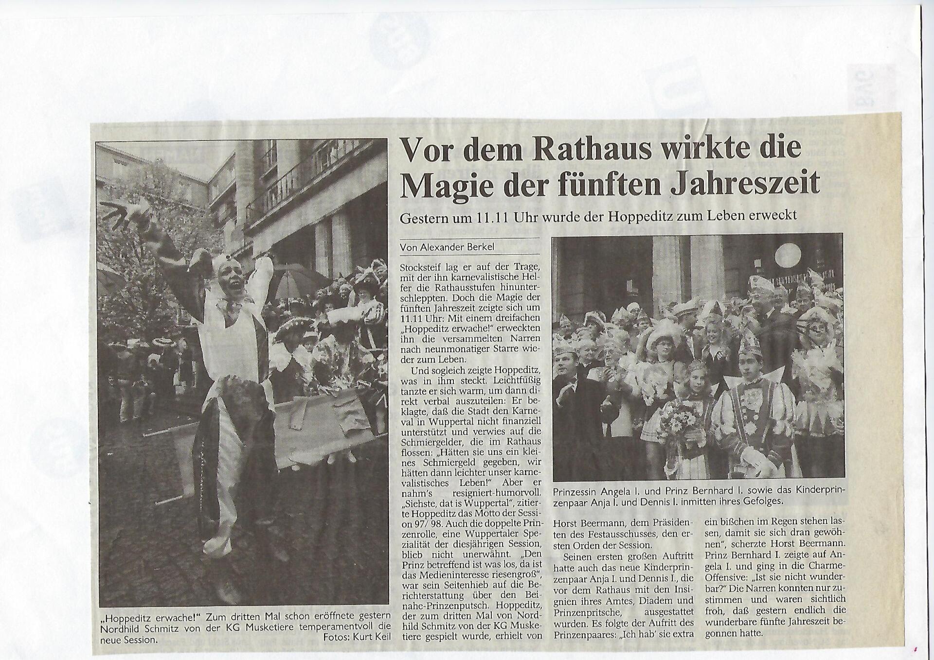Selbstverständlich waren die Aktiven wieder am 11.11.1992 zum Hoppeditz erwachen vor das Barmer Rathaus gezogen.
