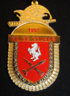 Der Name natürlich der Ort wo die Idee entstand. So wurde dann 1990 die Karnevals Gesellschaft ( Ka. Ge.) Colmar gegründet und Bernd Waldbrecher wurde zum Präsidenten und 1. Vorsitzenden gewählt.
